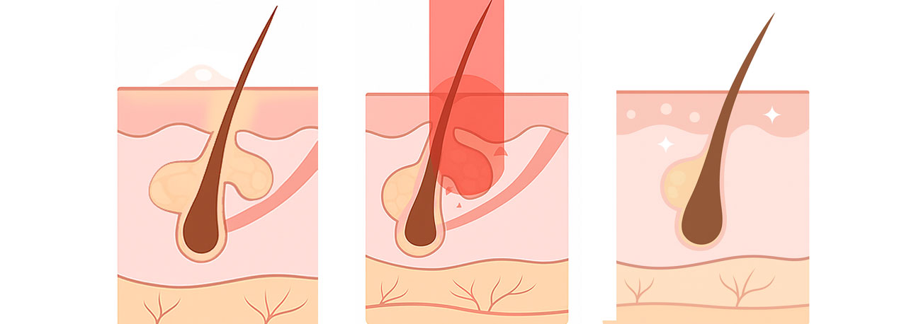 피지선 직접 축소로 재발 억제, 표피 손상 최소화, 모공·피부결 개선, 약물치료 반응 낮은 경우에도 적용