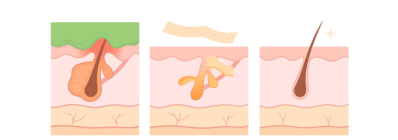 이 과정에서 모공 벽의 과각화가 제거되어 피지 배출 통로가 회복되고, 염증성 여드름이 완화되며 착색된 각질이 함께 탈락해 여드름 후 홍반과 색소침착 개선, 피부결 및 톤 개선에 도움을 줍니다.