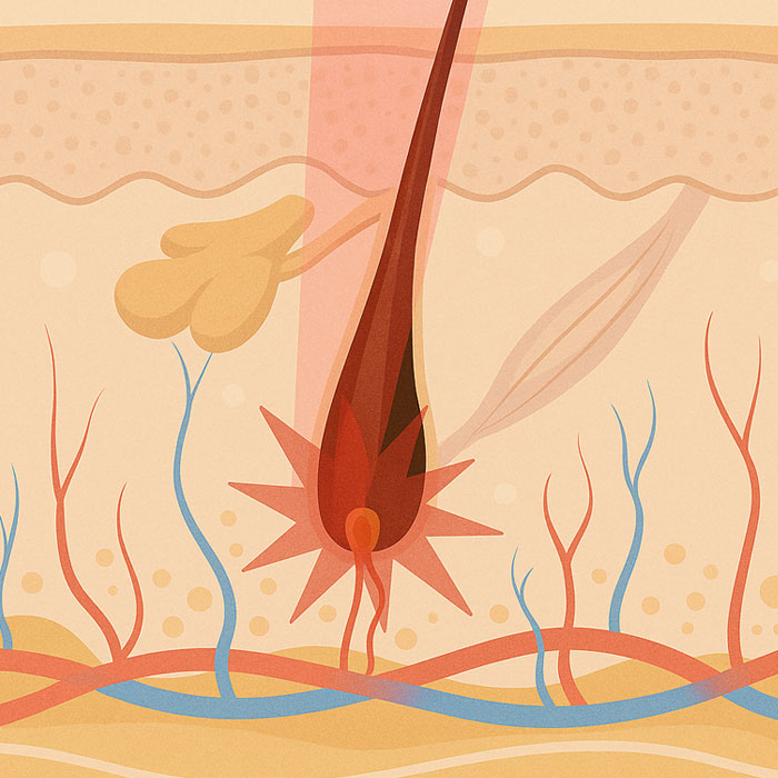 - 열 전달과 손상: 발생한 열은 모유두와 모낭에 전달되어, 털 성장 기능을 약화시킵니다.