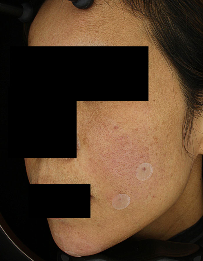 - 활성 염증성 여드름이 있는 부위는 시술 전 상태를 조절하는 것이 필요합니다.