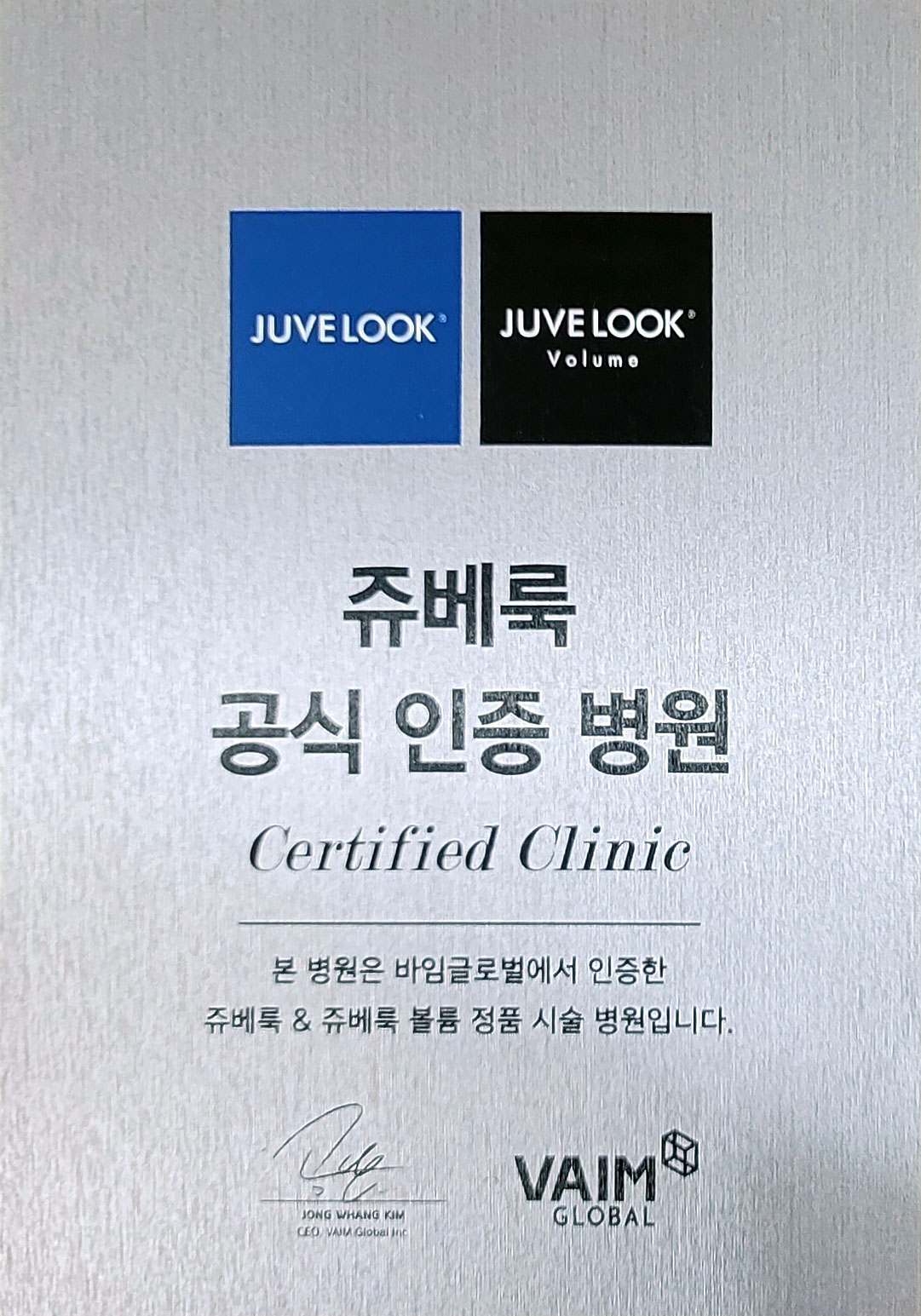 ※ 본원은 쥬베룩(스킨) 정품 시술을 전문적으로 시행하며, 인증 항목 중 ‘쥬베룩 볼륨’ 프로그램은 운영하지 않습니다.