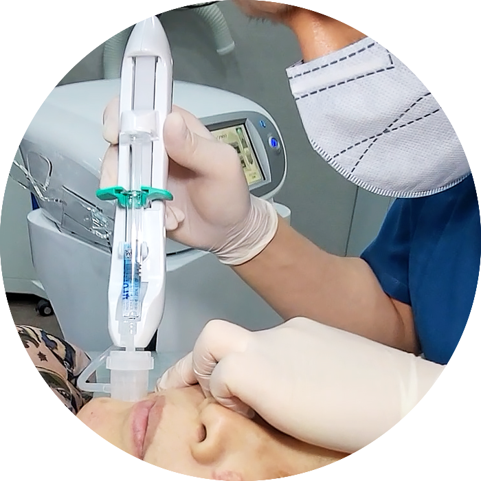 - 더마샤인 멀티니들 장비를 이용해 얼굴 전반에 균일하게 분포 주입