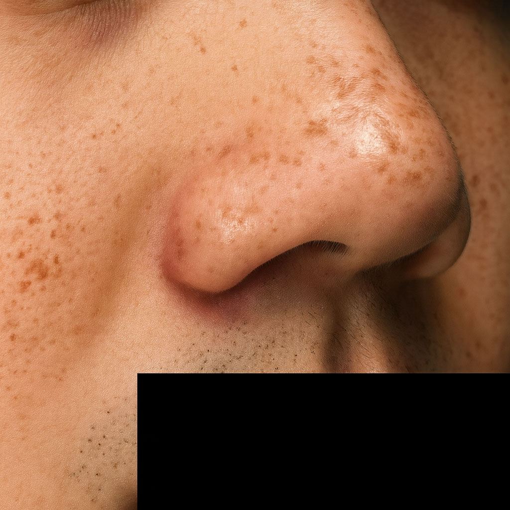 - 주근깨(Freckles) : 주로 10~20대에 보이는 작은 갈색 점으로, 얼굴 특히 코와 광대에 흩어져 나타납니다. 선천적 요인이 강하고, 햇볕에 쬐면 더 진해집니다. → 어릴 때부터 있던 점이 여름에 더 눈에 띈다면 주근깨일 가능성이 큽니다.