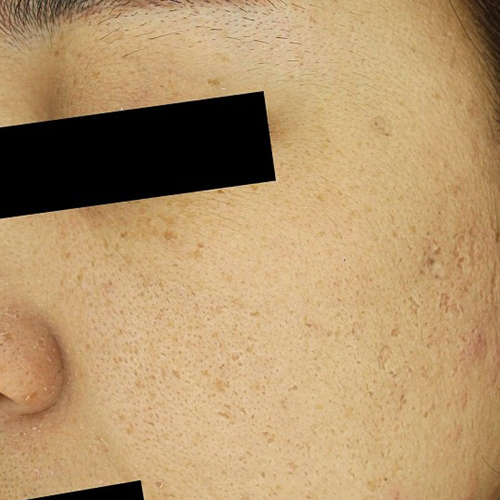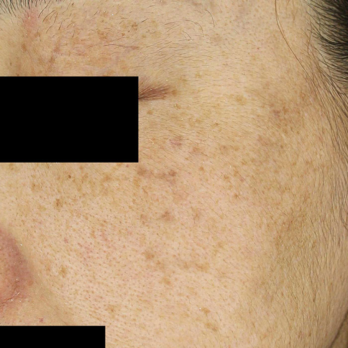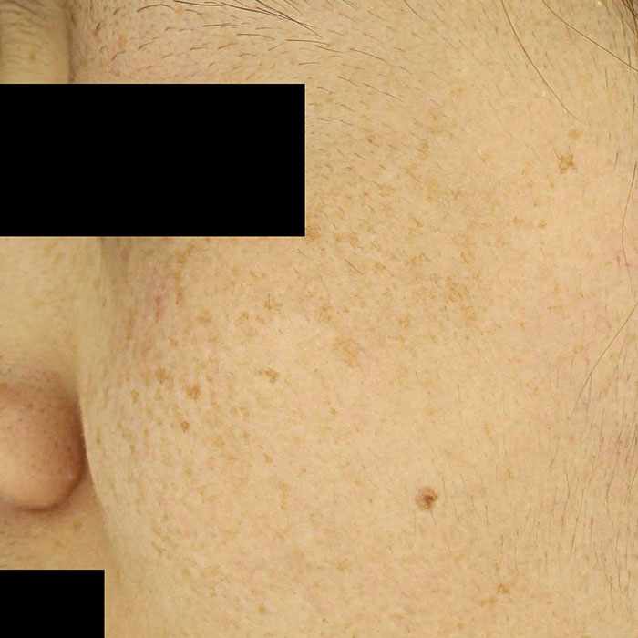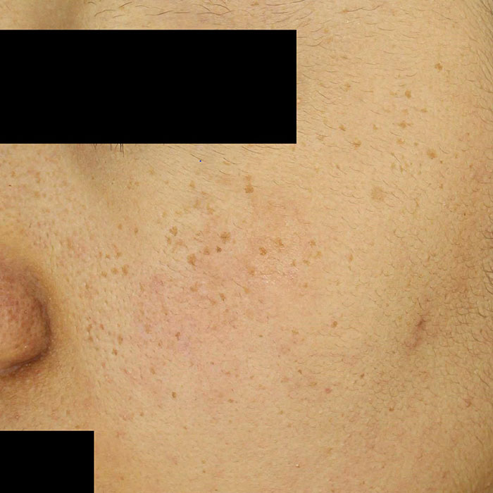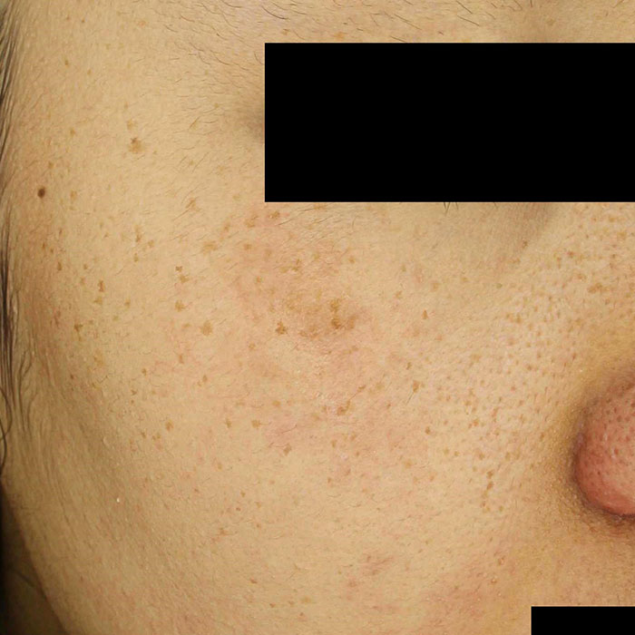 - 표재성 색소 : 멜라닌이 주로 표피(피부의 가장 바깥층)에 국한된 경우. → 주근깨, 표피형 흑자, 잡티(일광흑자) 등 → 갈색·황갈색으로 보이고, 치료 반응이 비교적 빠르고 좋음.
